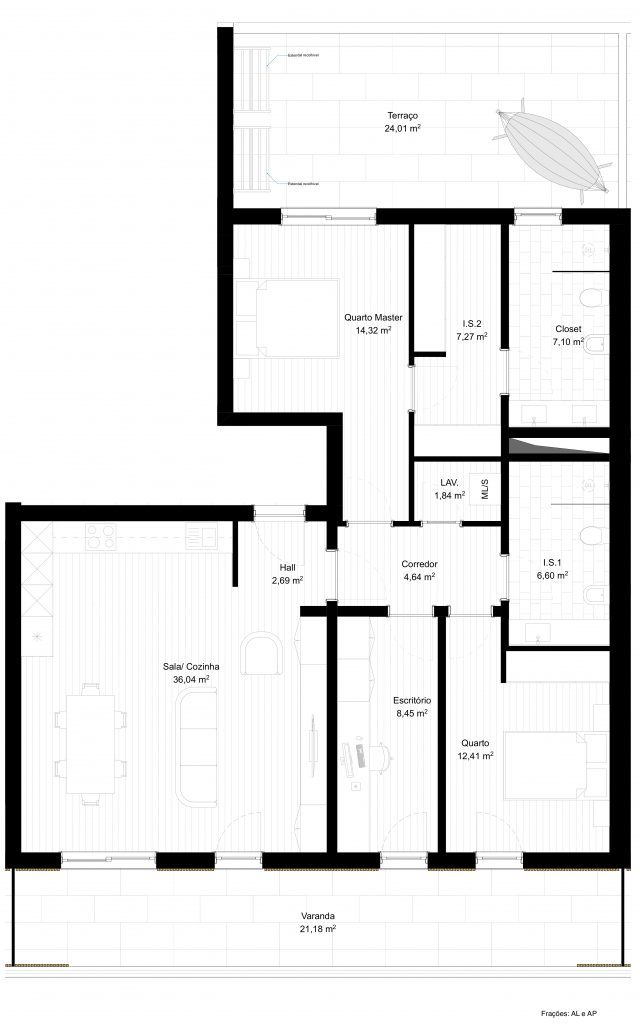 https://portimuscity.com/wp-content/uploads/2024/12/AL.mp4 2 Bedrooms 2 Bathrooms 2 Parking lots Gross Construction Area: 118.5 m² Balcony area: 45.2 m² Total Private Area: 194.5 m² Location: Floor 3 Identical Apartments: AP * The compartment areas are usable areas.